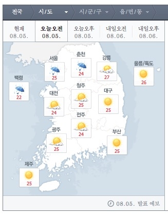 오늘도 역시 내내 더울것으로 사료되며 중부지방에 소나기가 오는 곳도 있겠다합니다.