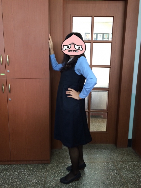 다른 직원에게 임부복을 넘기기 전에 딱 한번 입어보고 인증사진을 찍어봤는데