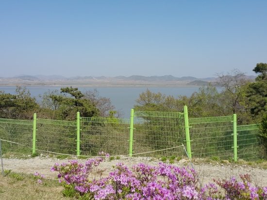 평화전망대입니다. 손대면 닿을 듯한 북한을 바라보고 있네요.