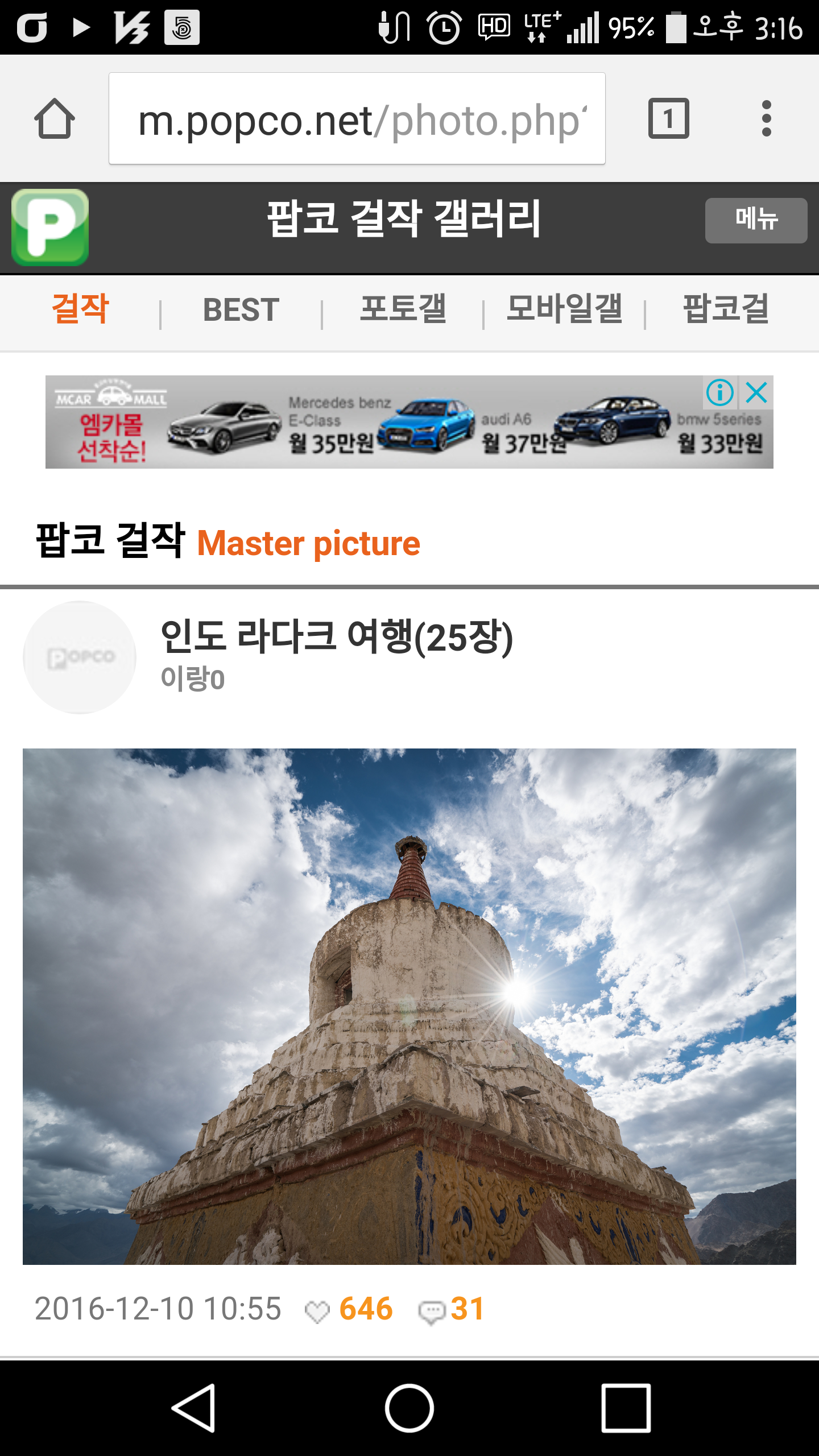 기존의 베스트, 작품갤, 모바일갤 에서 걸작, best, 포토갤, 모바일갤로개편 되었네요. 걸작갤에 들어가니 정말 주옥같은 작품들이~~ 베스트도 삼대가 덕을 쌓아야 가능한데 걸작갤은 어찌 가는건가유?? ㅍㅍㅍㅍ 항상 팝코 운영에 힘쓰시는 운영진들 수고와 노고에 박수와 감사를 드립니다. 덧- 이제 작품갤이 포토갤로 바뀌었으니 짤방 올릴 때마다 얼굴 화끈거리던게 덜할듯 합니다. ㅎㅎ
