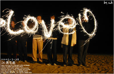 야간에 사람이 후레쉬들고 카메라 앞에서 뭐 글씨를 쓴다거나 하트모양을 그린다거나