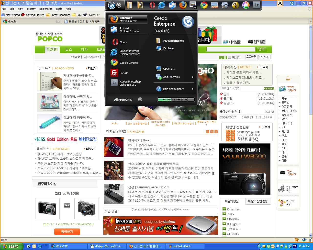 프로그램 실행을 하면.. 별도의 '시작' 메뉴가 뜨는데요.. 위 화면과 같다고 보시면 됩니다.. ^^
