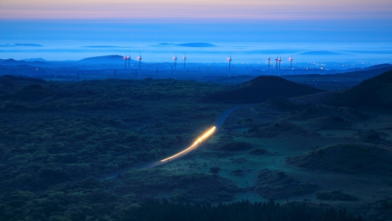 뒤 바다쪽에 뽈록뽈록한게 성산일출봉이랑 우도입니다. >.<
