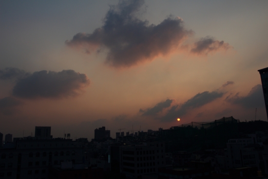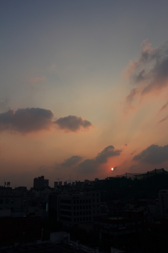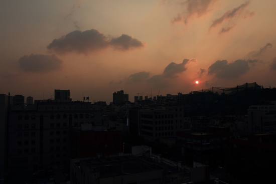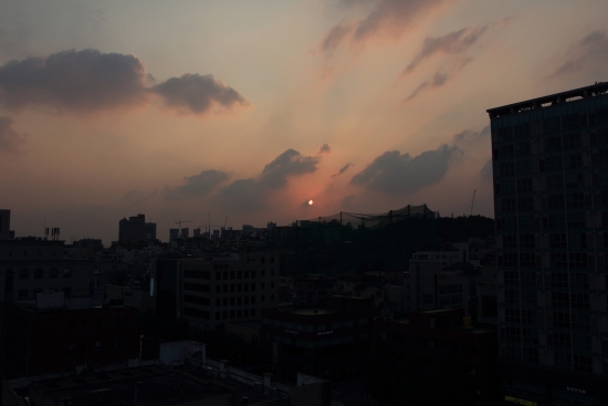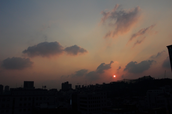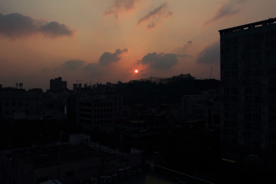 야근하다가 하늘색깔이 붉게 물드는 걸 보고