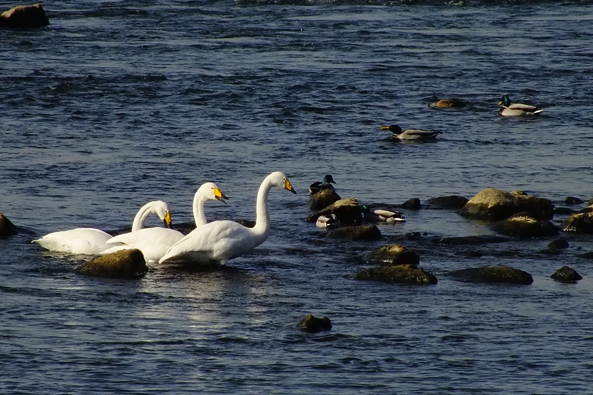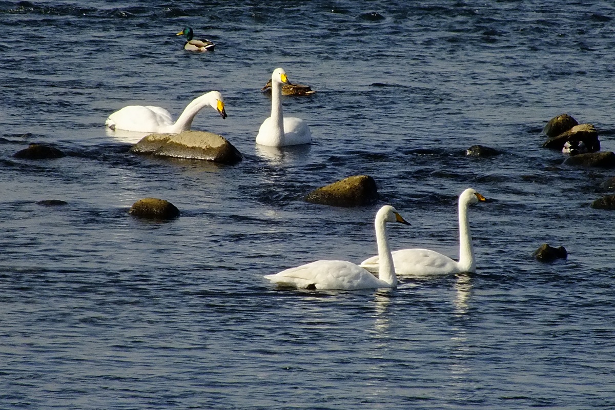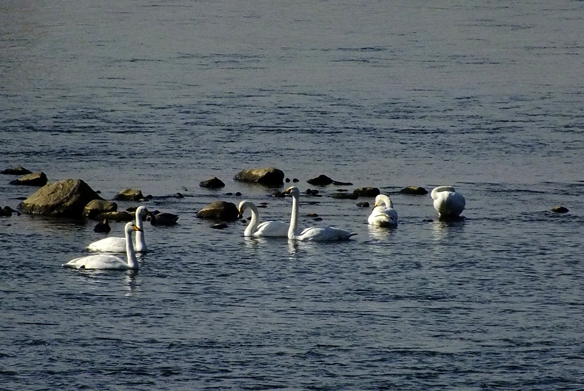 작년에 왔던 백조(큰고니)가 새끼들을 데리고 다시 찾아왔습니다