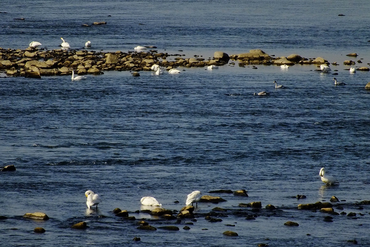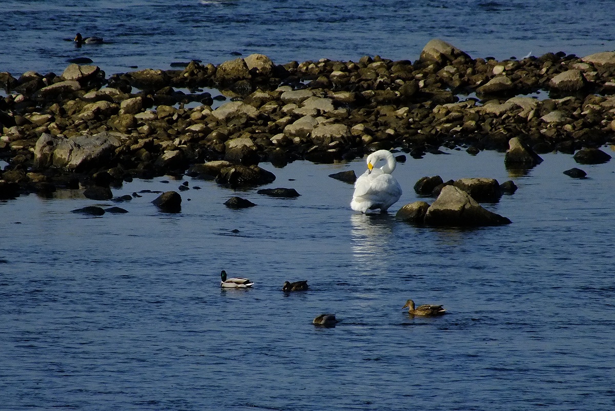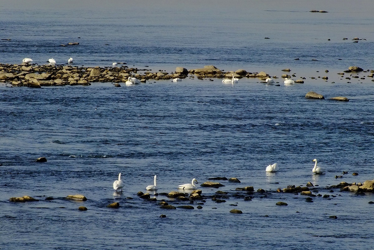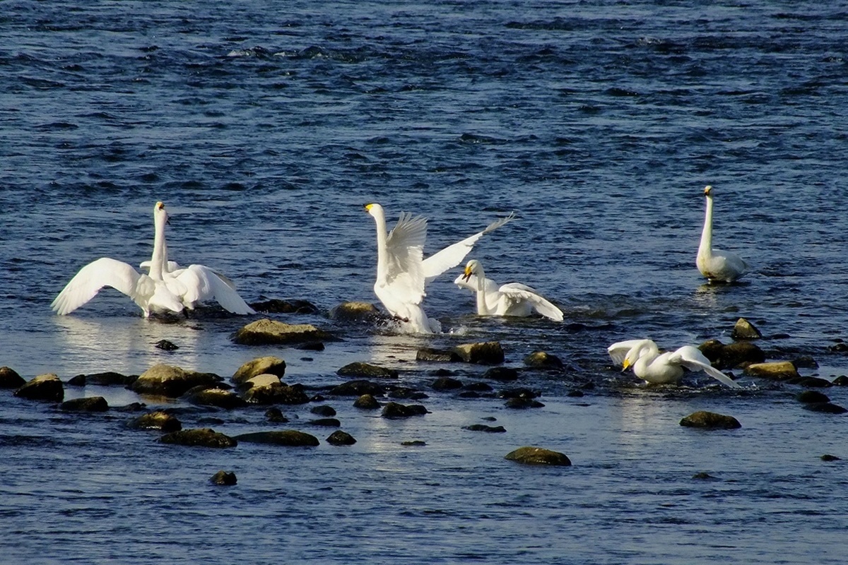 작년에 왔던 백조(큰고니)가 새끼들을 데리고 다시 찾아왔습니다
