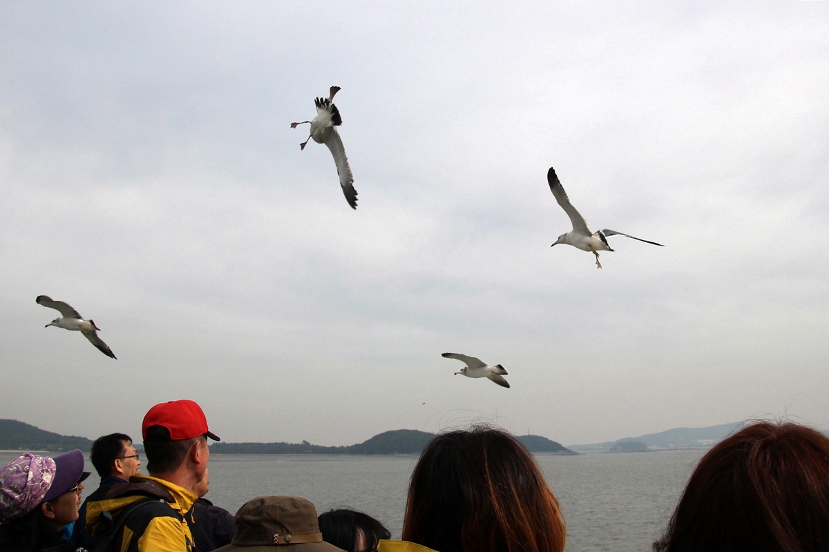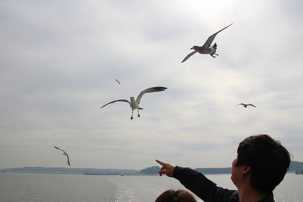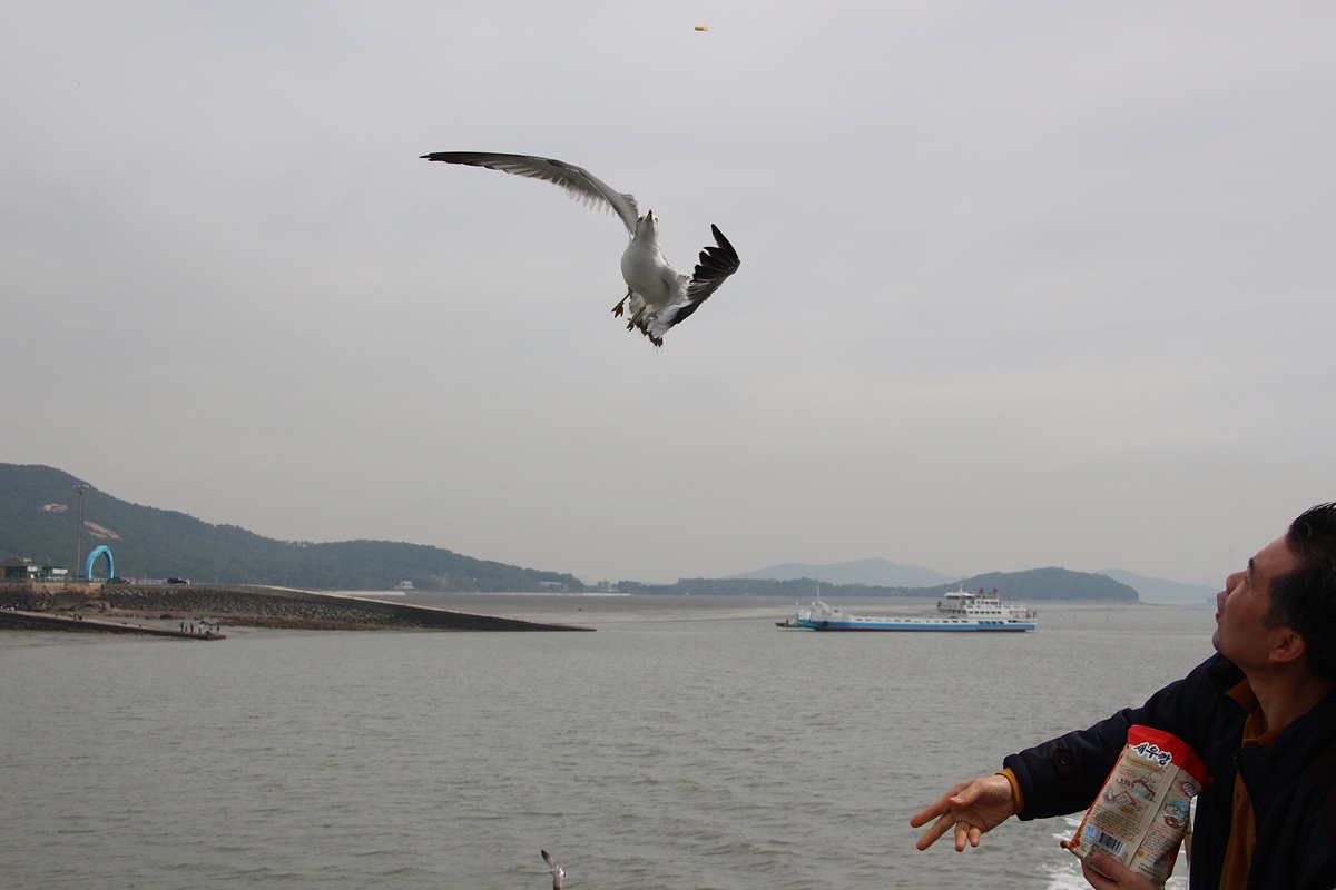 새우깡 받아 먹기에 숙달된.. 장봉도 갈매기들..