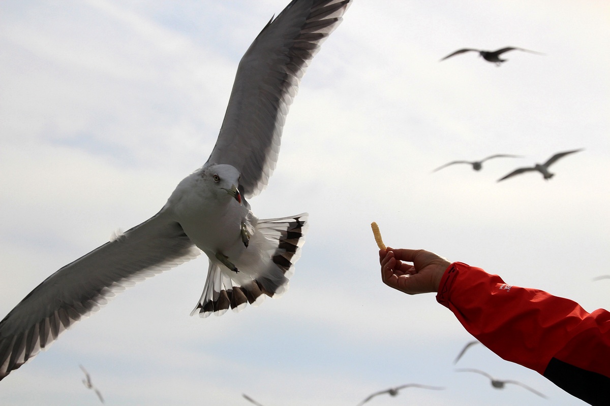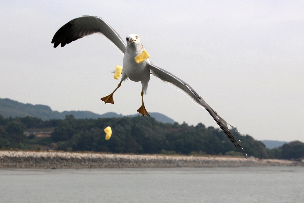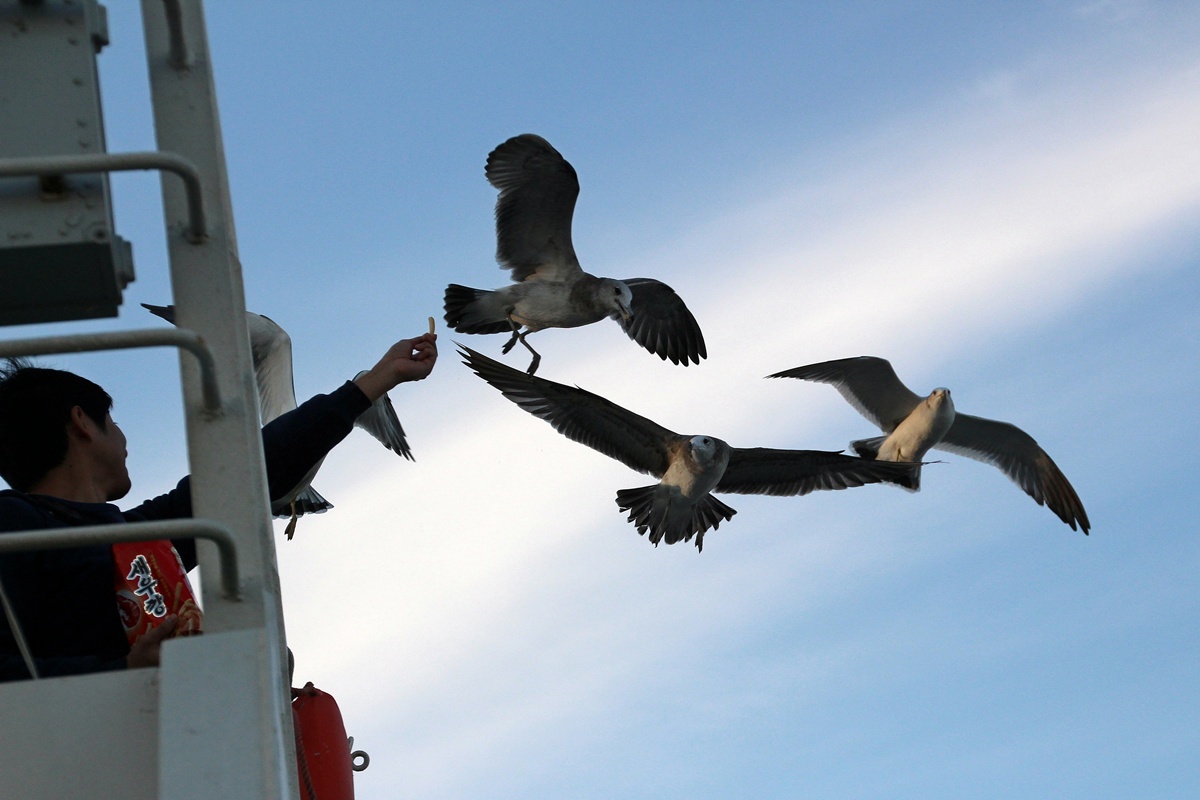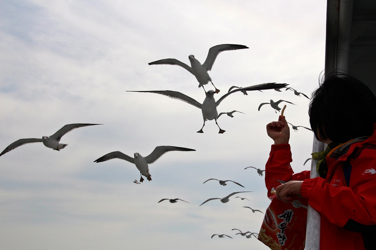 새우깡 받아 먹기에 숙달된.. 장봉도 갈매기들..