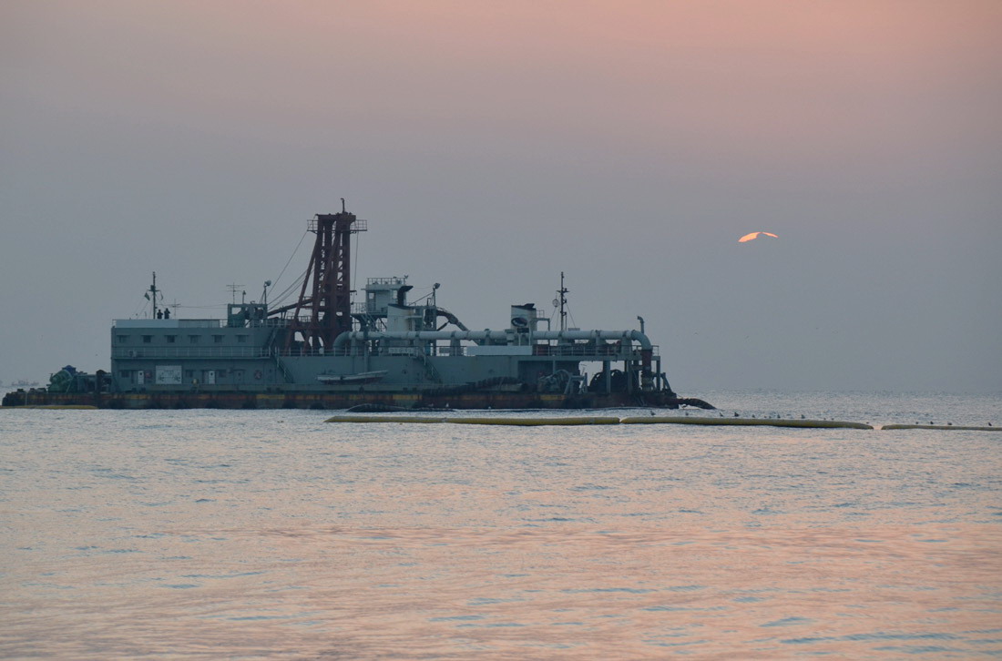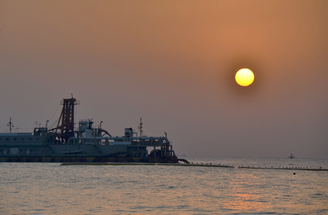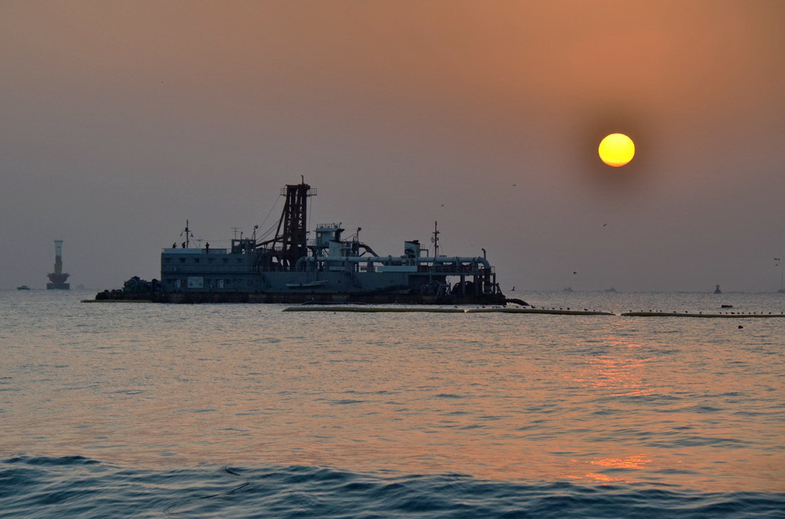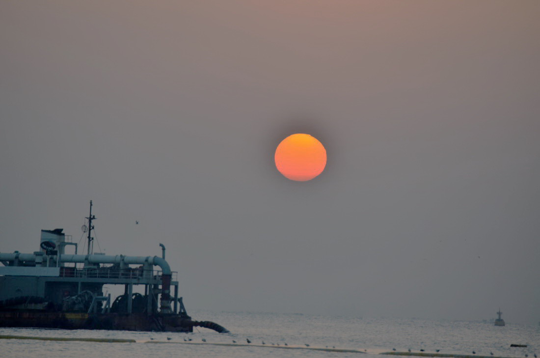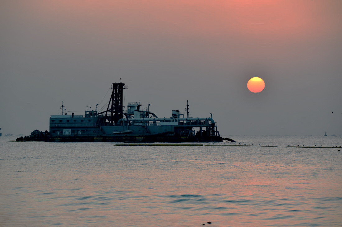 가운데 보이는 배는 모래운반선 같애요...