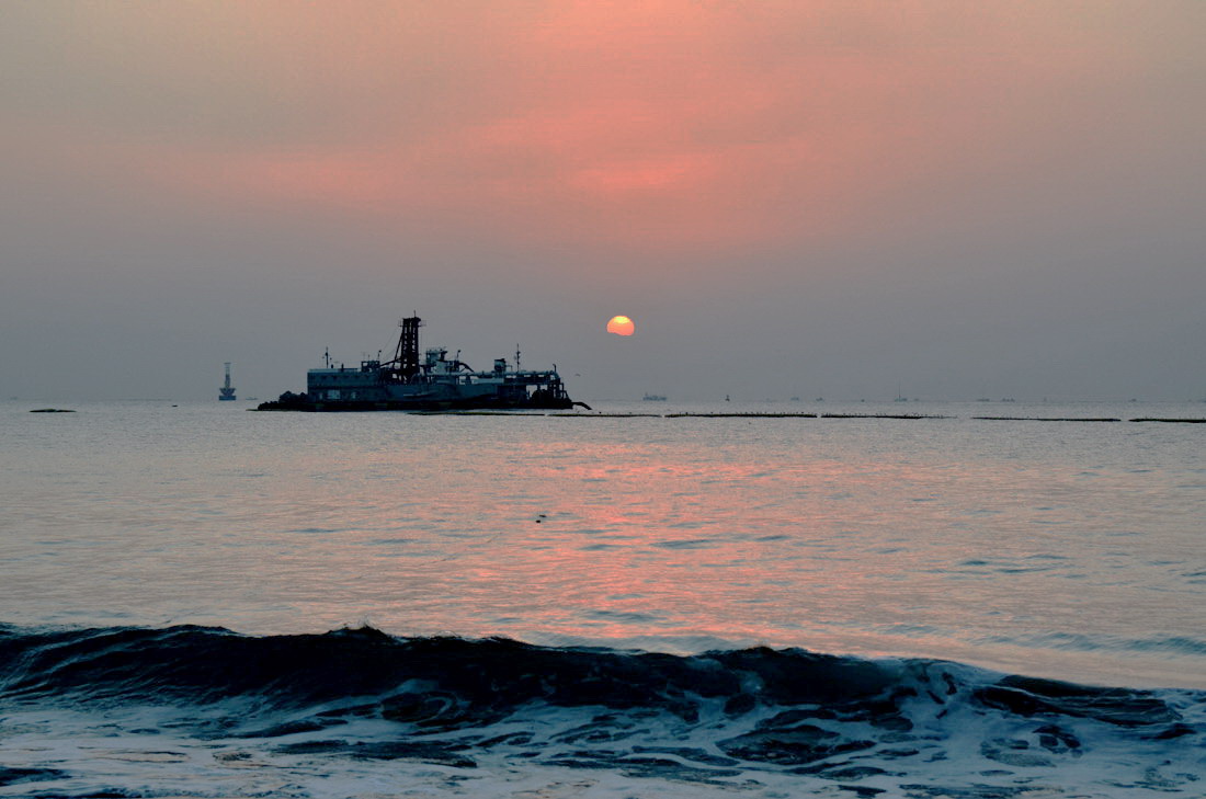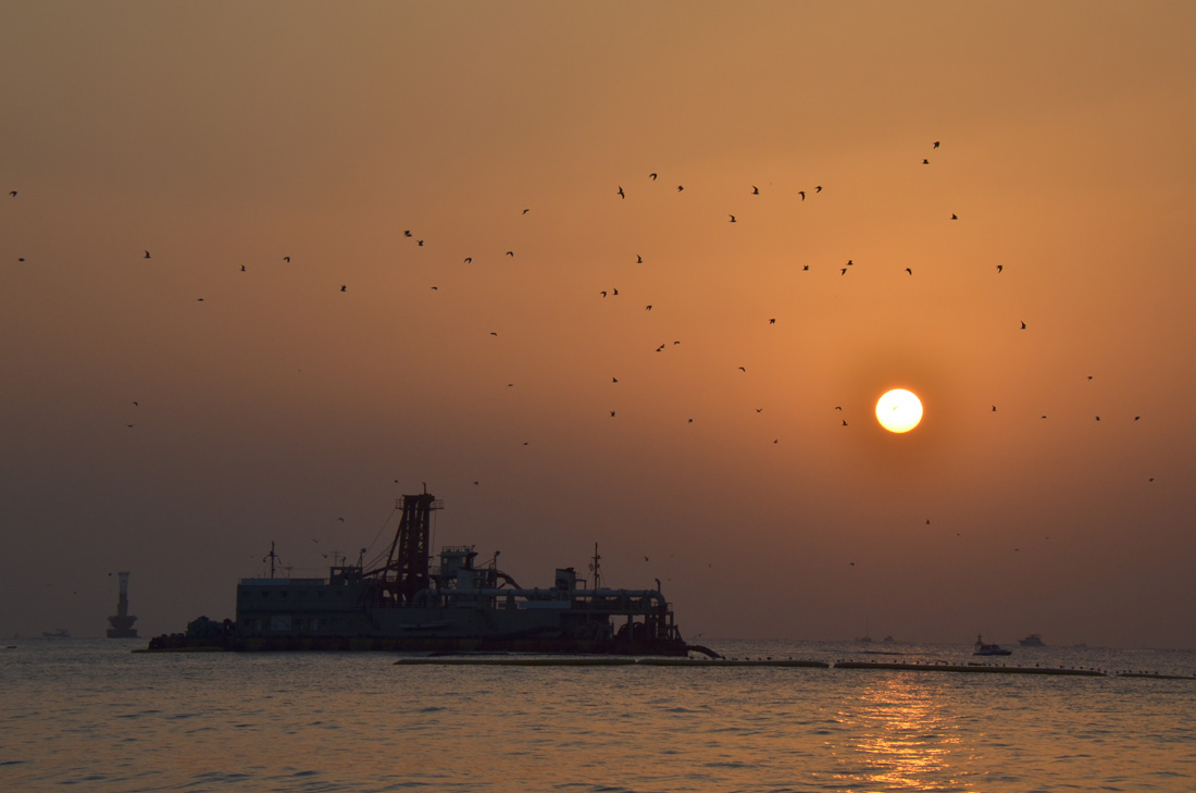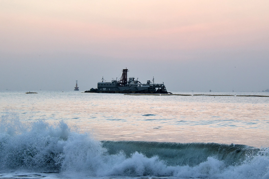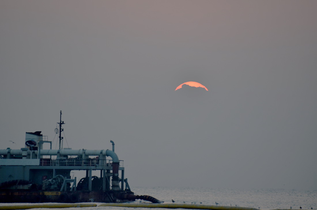 가운데 보이는 배는 모래운반선 같애요...
