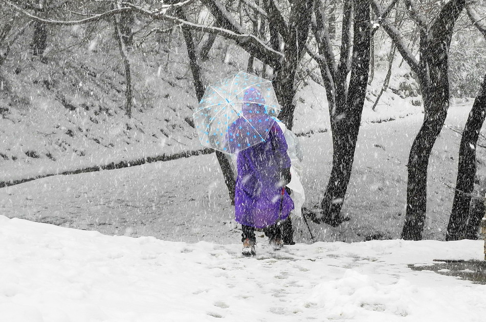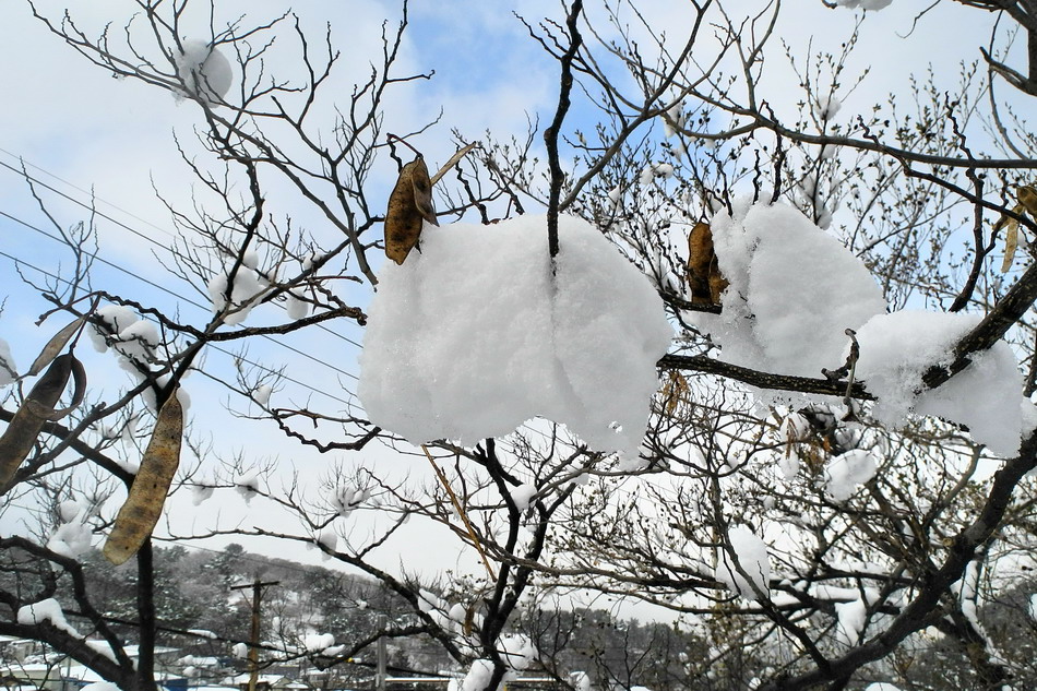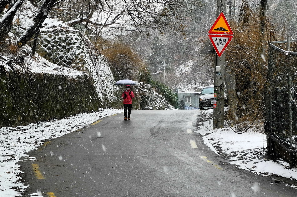 영동지방의 폭설과 더불어 부산에도 눈이