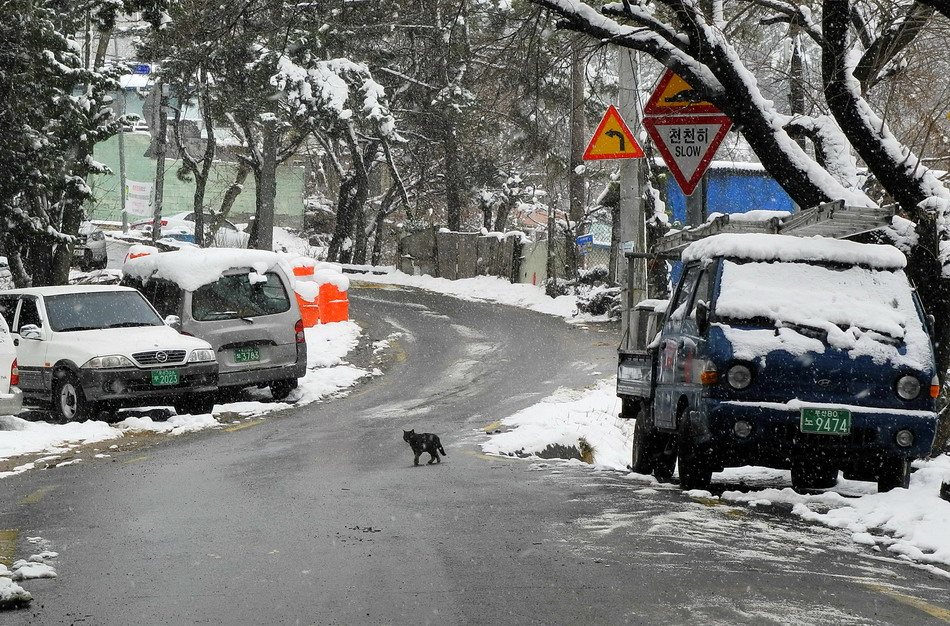 좀처럼 오지않던 부산의 눈