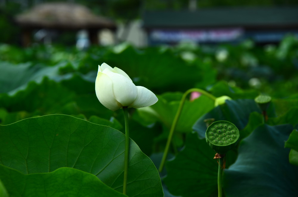 조금전 분 비바람과 소나기에 연꽃이 많이 쓰러졌습니다....