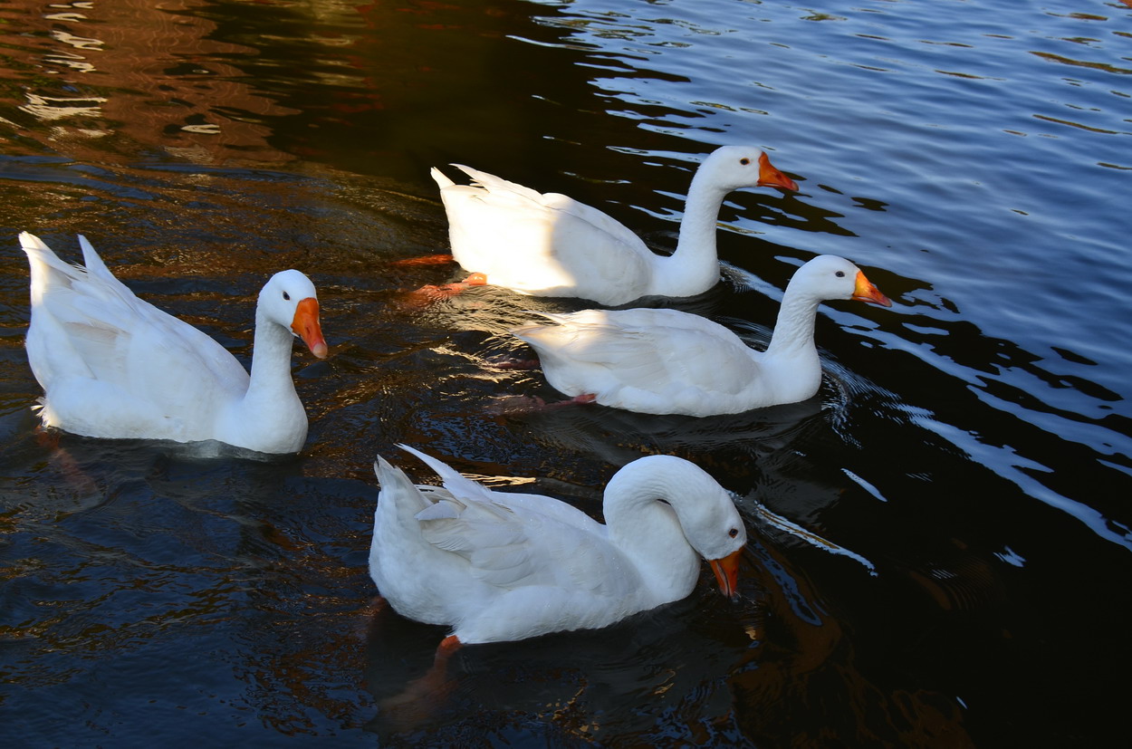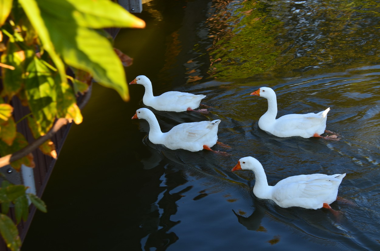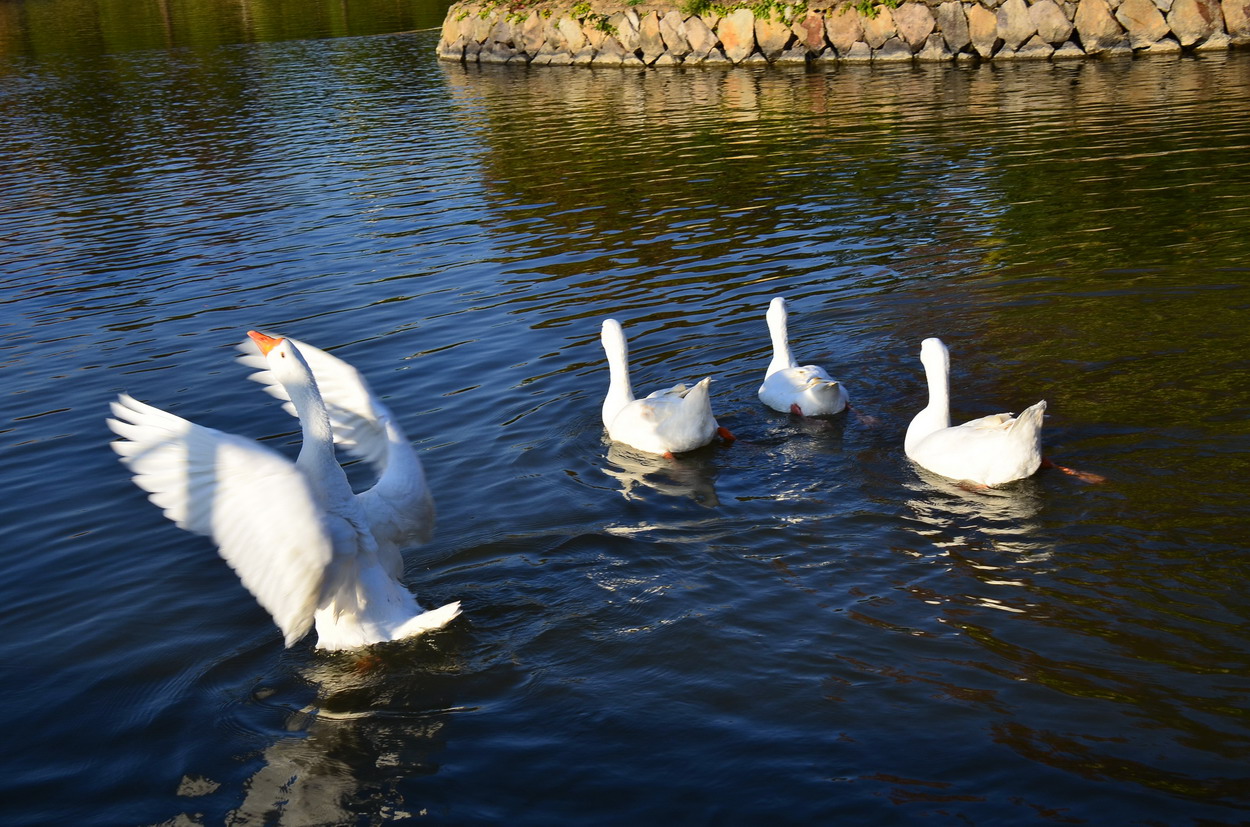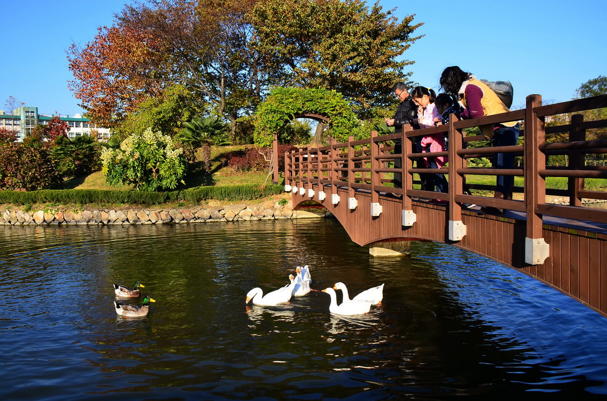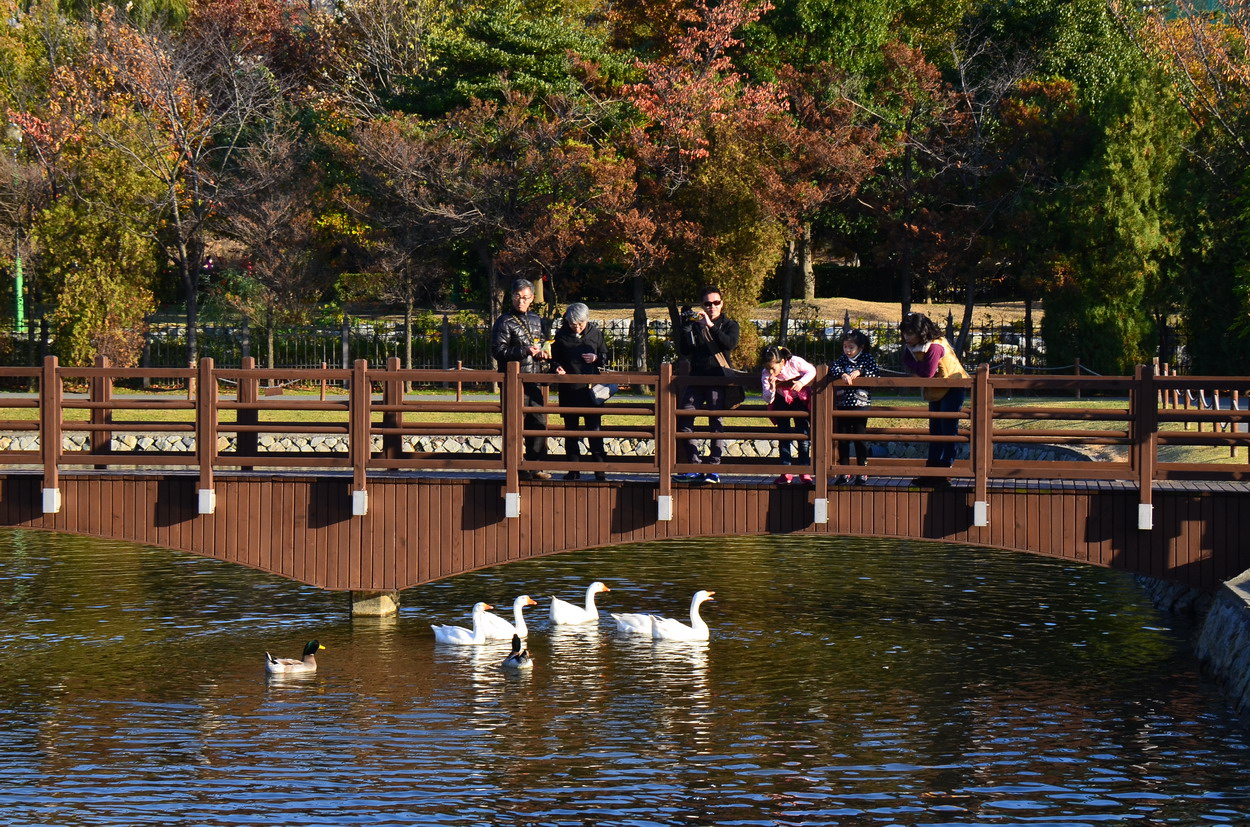 UN기념공원안에 작은 연못에 노니는 거위들