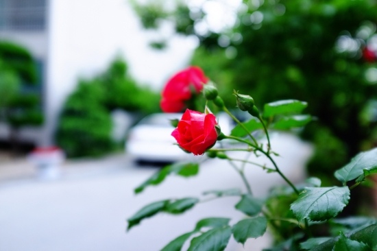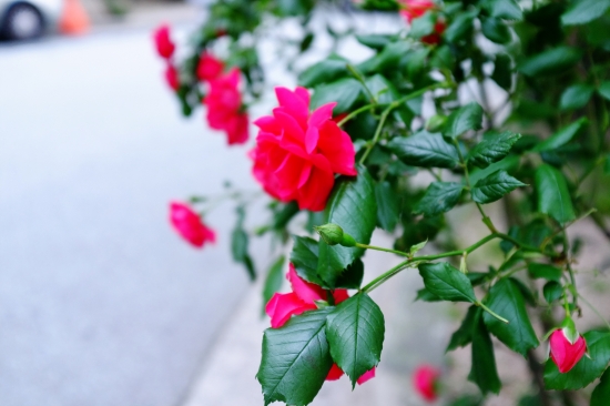 아침에 차 시동을 걸다가, 아파트 담장에 몇송이 장미가 피어 있길래 찍어봅니다