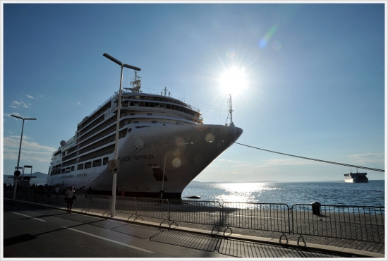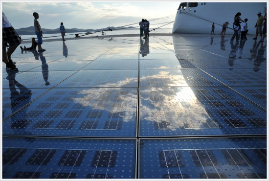 '태양의 인사'는 유람선 항구에 있는 동그란 원형의 태양열 집열판입니다.