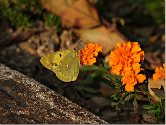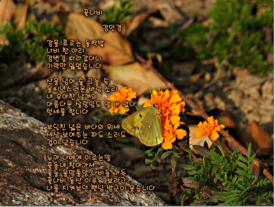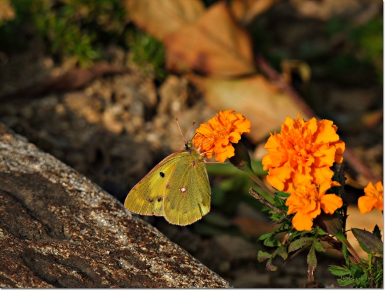 만수국에 앉은 나비를 발견하고 사진찍으려고 다가가니 역시나 나비는 나잡아봐라는듯 날아가버렸어요. 나비는 그자리로 다시 돌아온다는 말을 누군가가 말해줘서 혹시나 하는 마음에 미리준비해간 비장의 무기인 꿀을 나비가 앉았던 꽃에다가 발라 두고 기다리고 있으니까 무심하게 날아갔던 나비가 꿀냄새를 맞고 다시 온건지 만수국에 앉아서 꿀을 정신없이 빨아 먹는틈에 찰칵찰칵 찍었답니다...^^