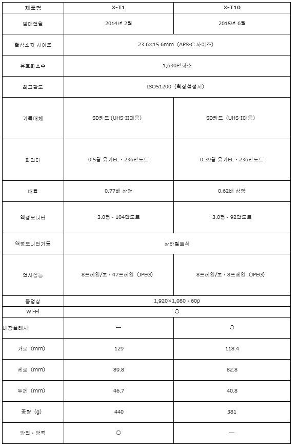 후지 필름"X-T1"과 "X-T10"의 차이를 살펴보자