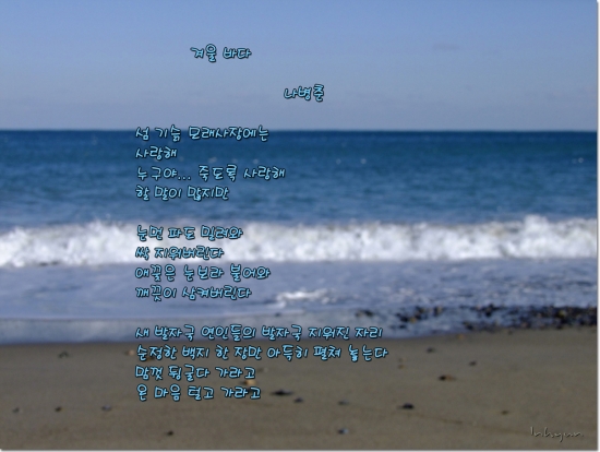 주말들 잘 보내셨나요...^^ 비가 오는곳은 오는대로 비가 안오는곳은 안오는곳대로 습도가 높아서 많이 더우실것 같네요. 겨울에 갔던 감포바다 사진입니다. 잠시나마 겨울바다를 느끼시면서 시원하셨으면 좋겠습니다...^^