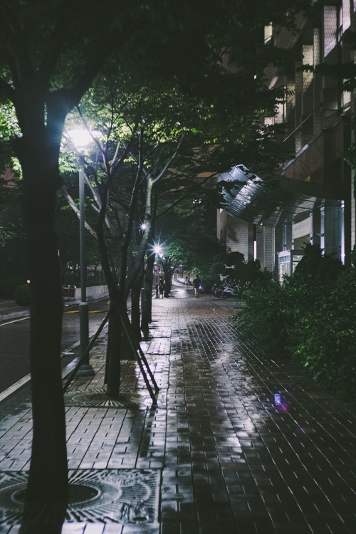 지난 주 비오는 날 밤길이었습니다.