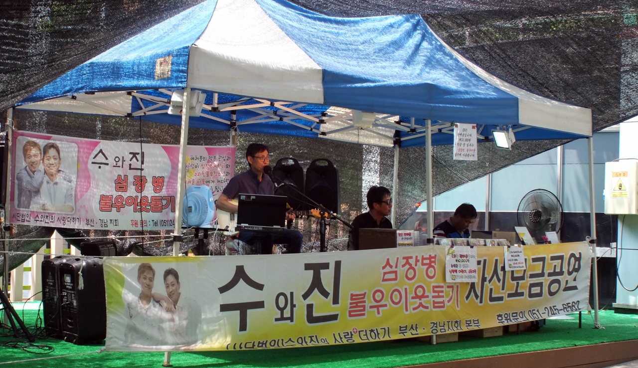 입구에서는 여전히 수와진의 자선공연이...