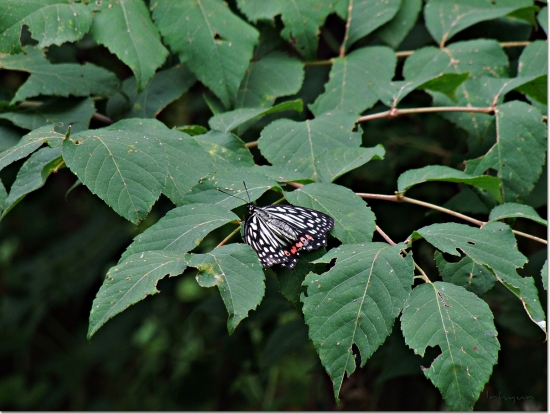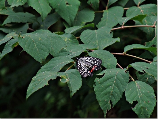 나뭇잎에 앉아 날개를 말리는듯한 나비를 발견 했어요. 혹 날아가버릴까봐 마음이가 급해서 한장 먼저찍어봅니다. 다시 한장을 찍어도 나비는 꼼짝도 않습니다. 한발더 다가서서 찍어도 나비는 그대로 있습니다. 더 가까이 가서 찍어도 괜찮겠따 싶어 더 다가가는 순간 매롱 하면서 나비는 날아가 버립니다...^^ 꽃이라면 기다리면 다시 돌아 올 수 도있겠지만 나무잎이라서 아쉽지만 자리를 뜰 수밖에 없었어요.
