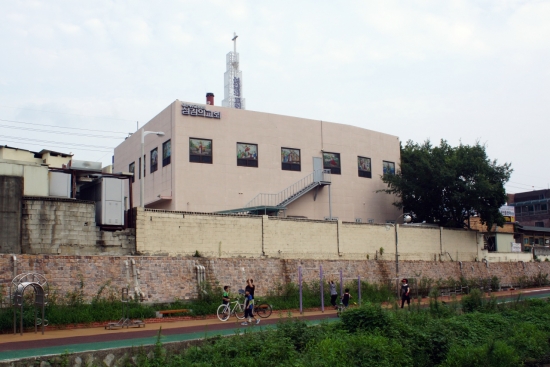 천변을 따라 교회가 많습니다