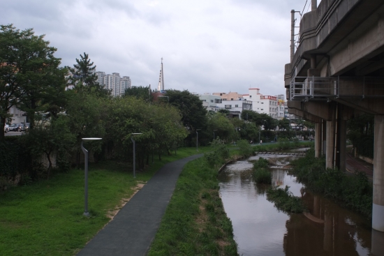 백로가 노니는 온천천.