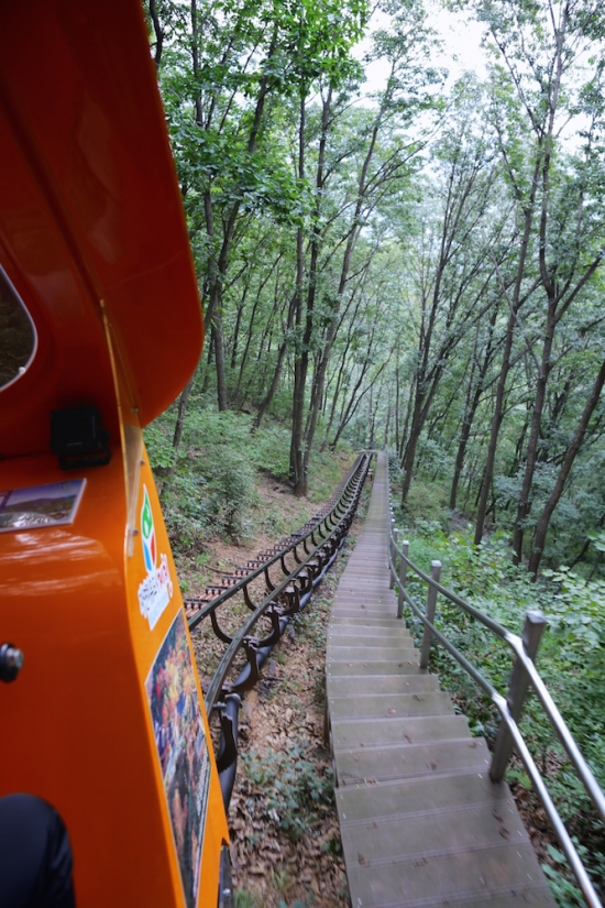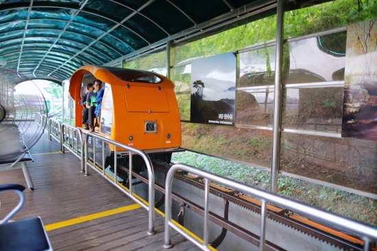 정말 가파른 경사를 안정적으로 올라가고 내려오더군요. 돈이 아깝지 않은 모노레일 투어와 그리고 정상에서 보는 시원한 청풍호의 경치는 기억에 오래 남을 것 같습니다.