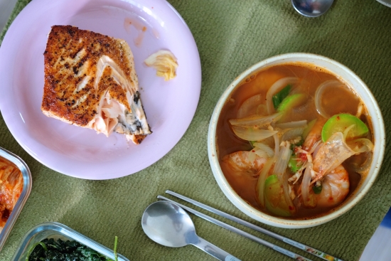 집밥, 간식, 회전초밥에서 좋아하는 따코와사비, 광어회무침, 그리고 문어 짬뽕등 사진입니다.