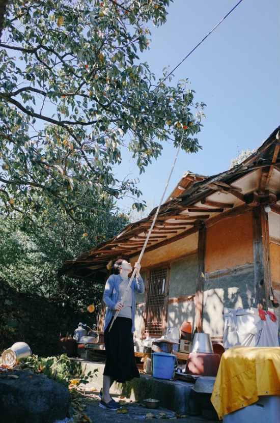바로 저의 집사람이였습니다.. 생의 첫 감따기 도전...^^;