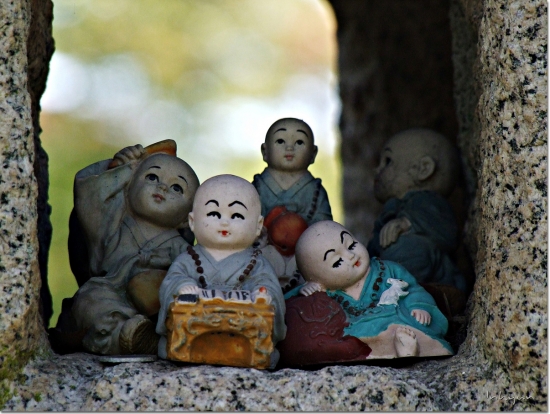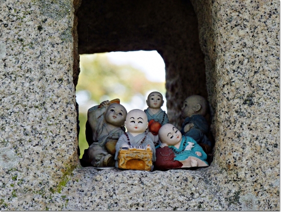 누군가 석등속에다가 동자승인형들을 잔뜩 넣어 뒀네요.