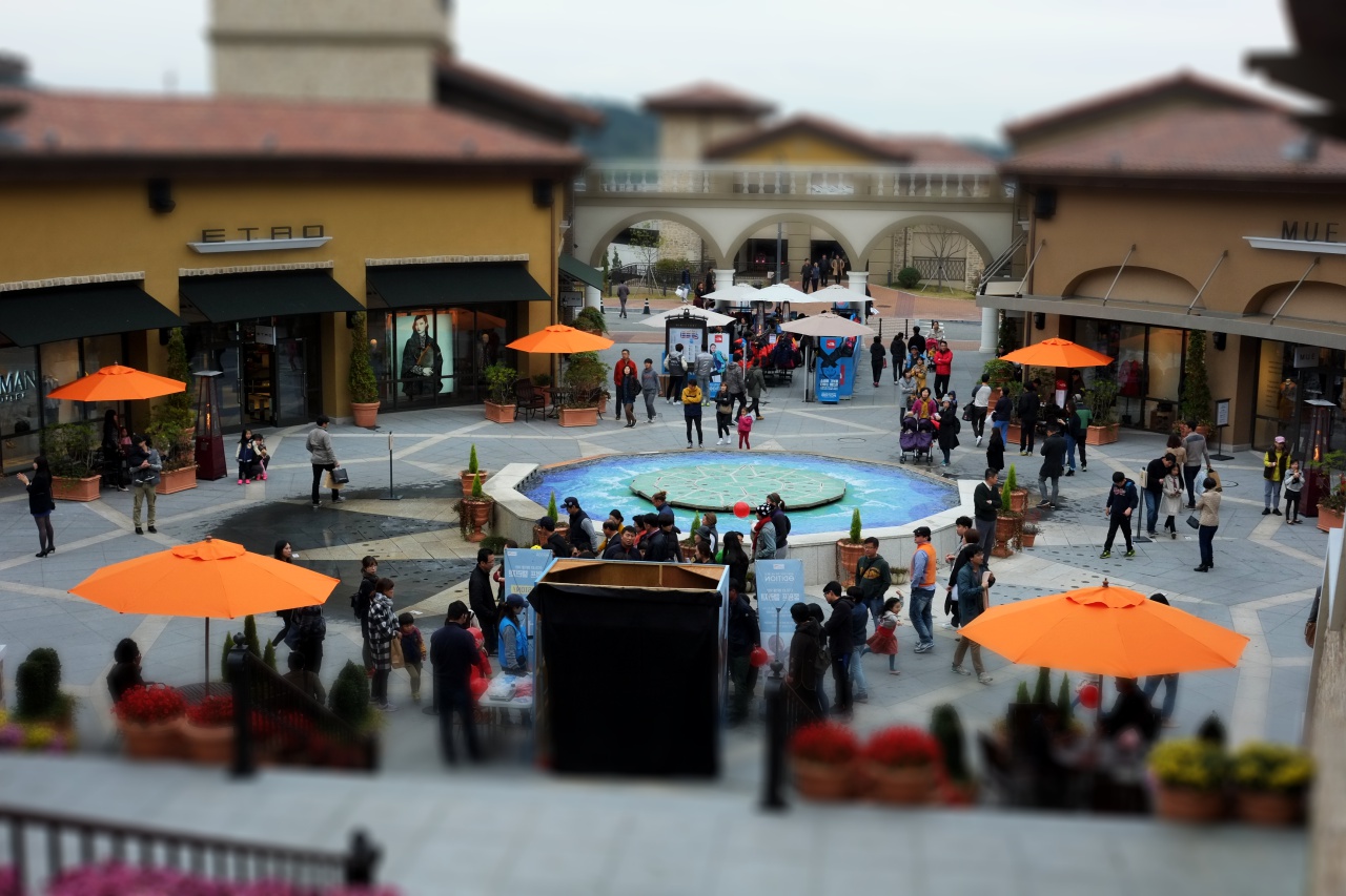 유럽 모방풍의 건물로 이뤄진 쇼핑 센터입니다