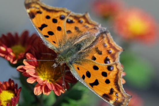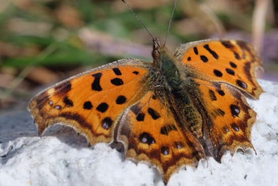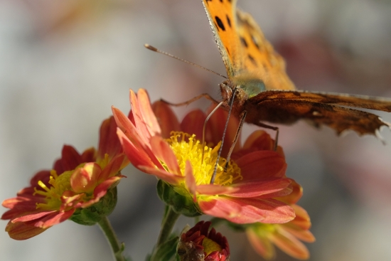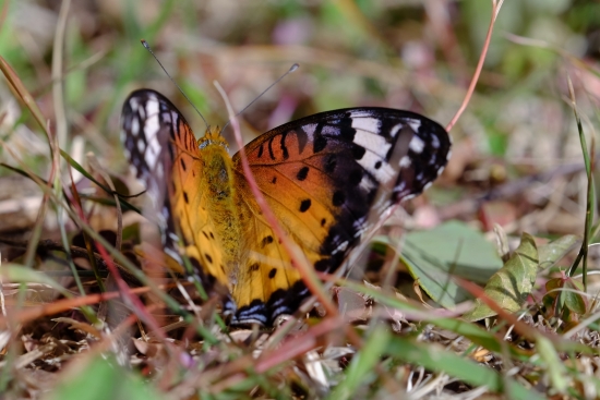 네발나비는 경계심이 그리 높지 않아서 쉽게 접근할 수 있었습니다. 살금살금 쪼그려 앉아서 다가갔습니다.