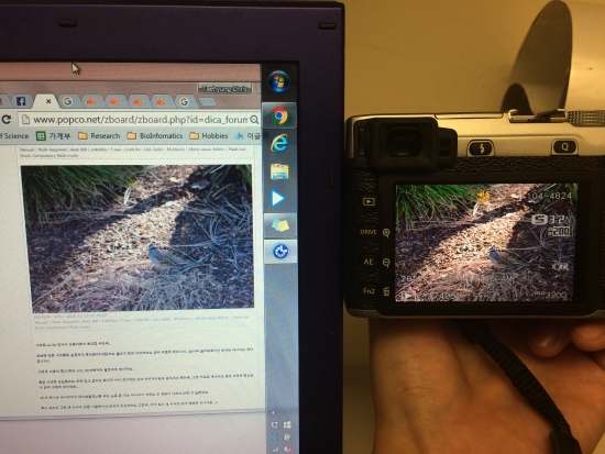 올린 사진은 점검용으로 대충 찍고 곧바로 현상한 거라 색수차도 있고 하이라이트도 날아가고 했는데, 그런 부분을 배제하고 봐도 여전히 액정보다 살짝 파랗게 보이네요...