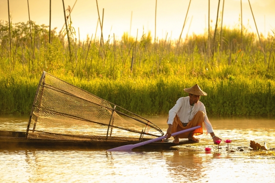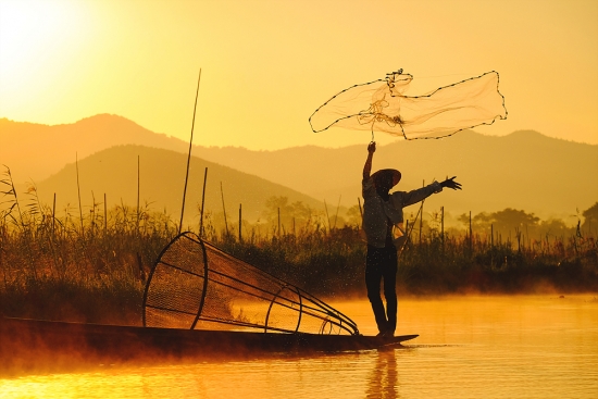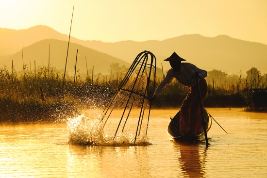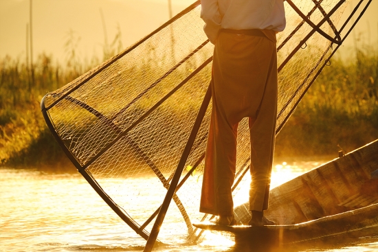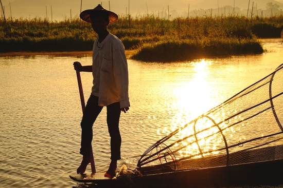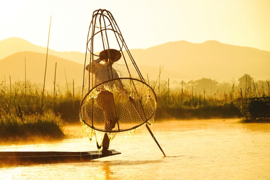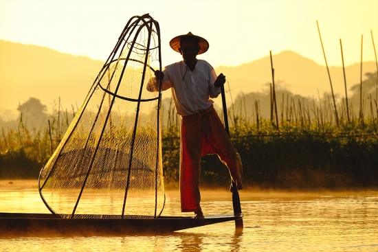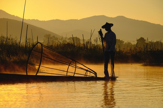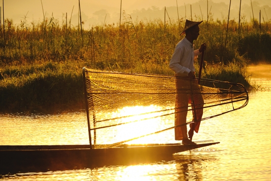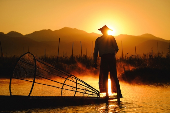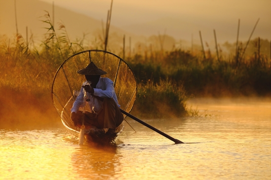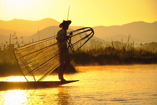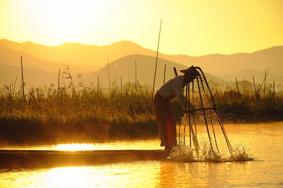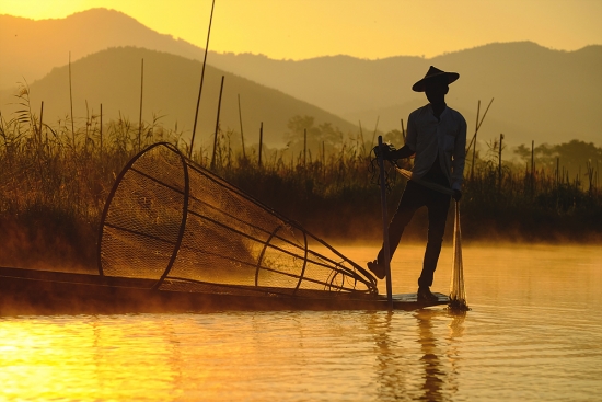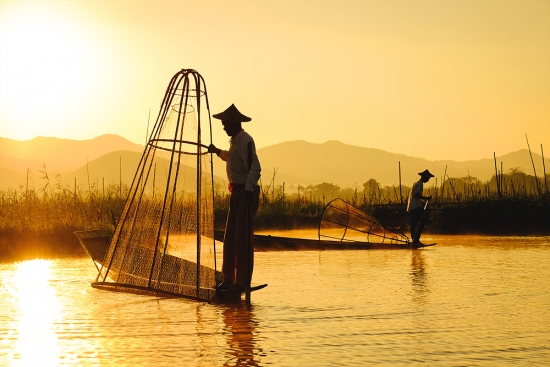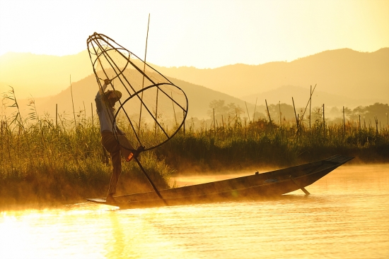 아침을 여는 인레호수의 인따족 어부들