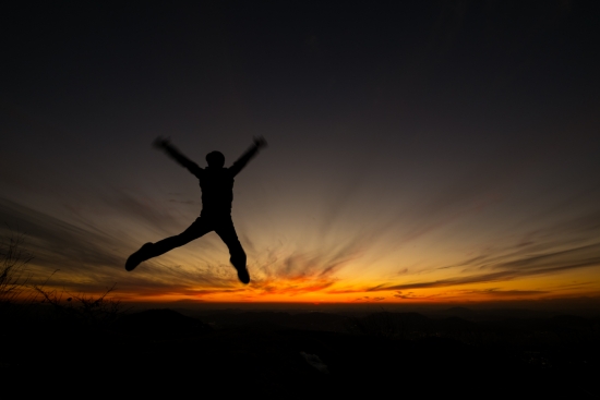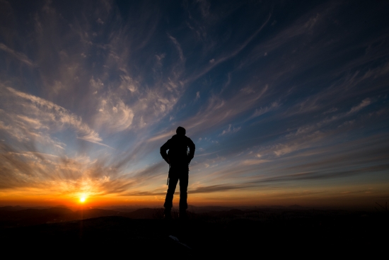 일몰을 바라보는 등산객..
