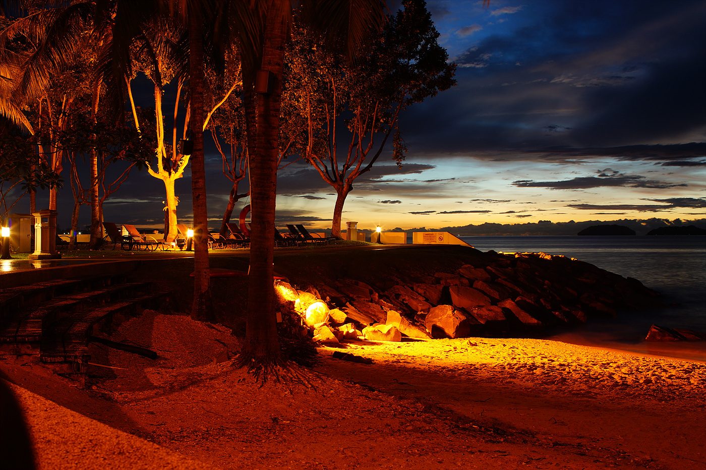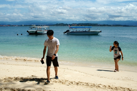 삼각대 없이 어디 의자 같은 데 올려놓고 찍은 코타키나발루의 석양