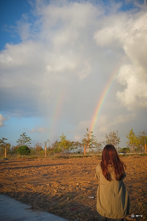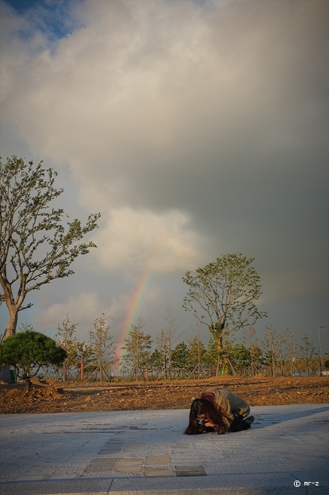 아내는 무지개보다 중요한걸 찍나 봅니다.