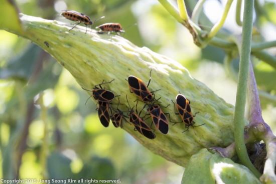 오늘의 깍두기는 회식을 즐기는 십자무늬긴노린재입니다. 이것은 수동 55마로 찍었습니다.