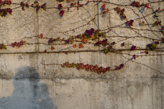 교각에 붙어사는 덩굴식물도 붉게 변했습니다.