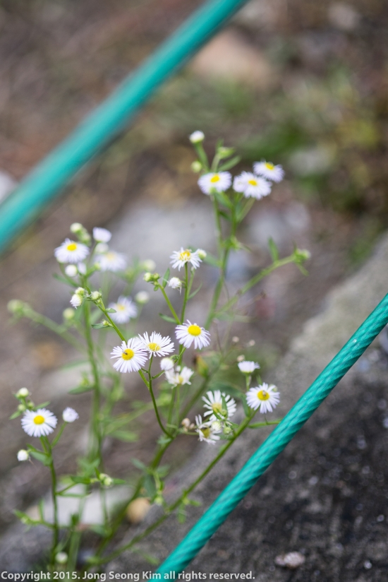 자전거 도로 울타리 밑의 망초입니다.