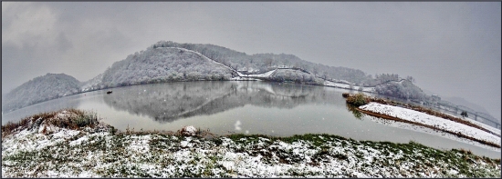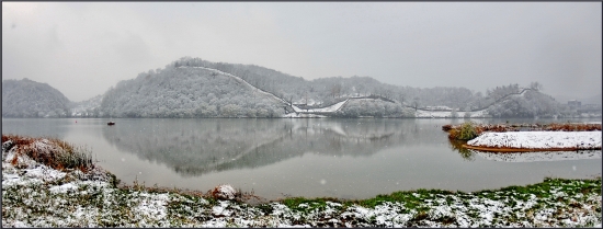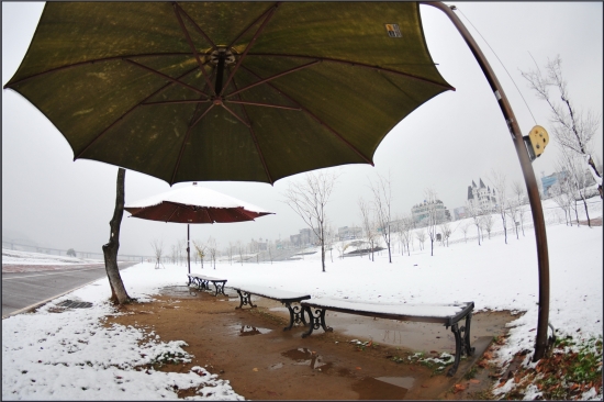 첫 눈 내린 금강변에서