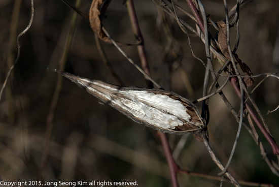 대전 갑천에서 찍은 박주가리 열매와 씨입니다.