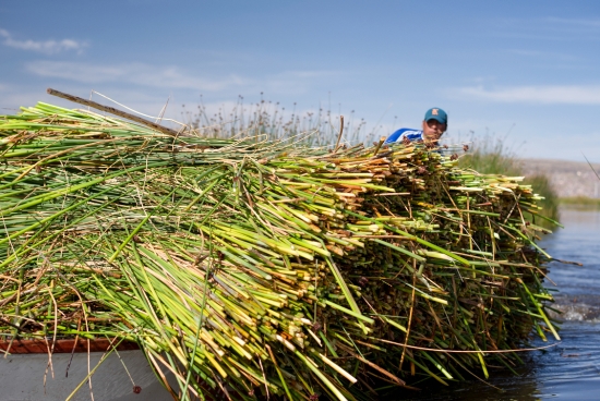 인공섬을 짓는 재료가 바닥에 깔려있는 "토토라"라고 하는 갈대인데, 두꺼운 갈대를 잘라 바닥에 깔면 그 자체로 뜨는 땅이 만들어집니다.