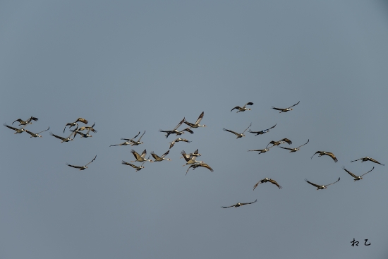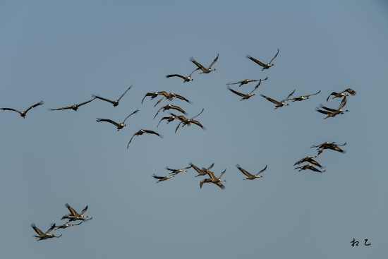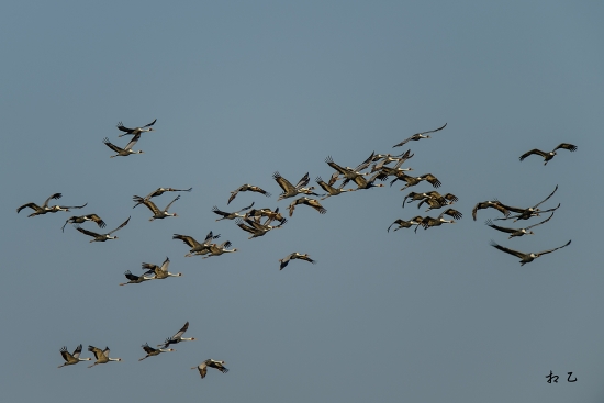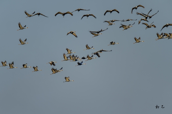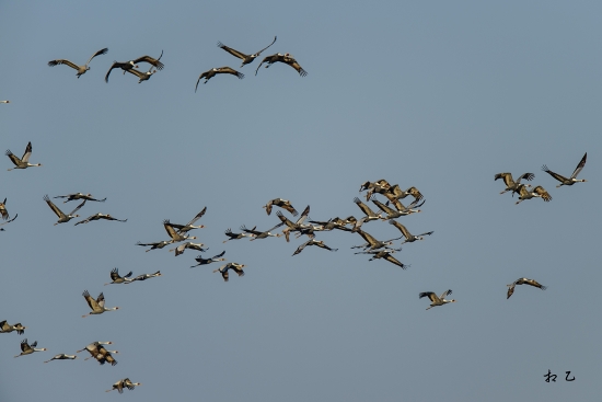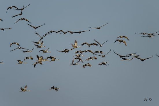 엄청난 수의 재두루미가 하늘을 날아올라