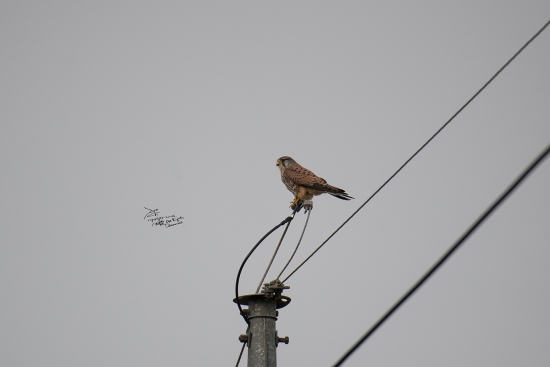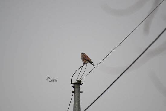 오리 찍으려고 보니 전봇대 위에 황조롱이가 ㅎㄷㄷ