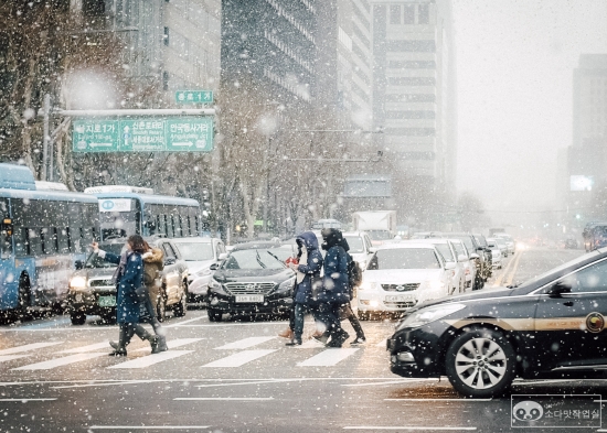 휘저으며 사진으로 눈오는 거리 풍경을 담아보았습니다. ㅎㅎ