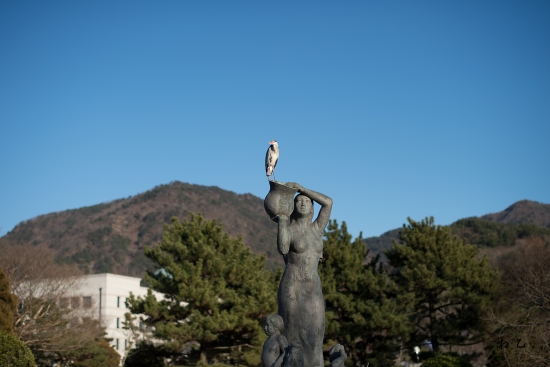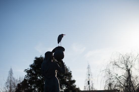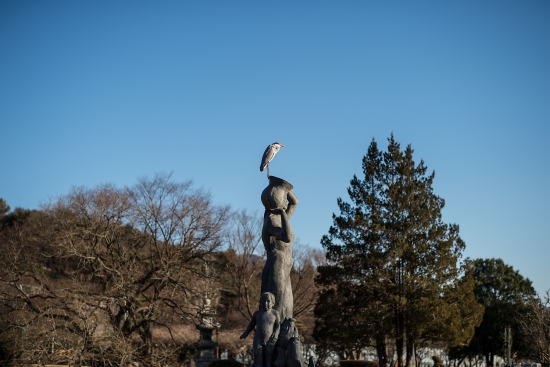 도청에 있는 연못동상에 딱 버티고 앉은 왜가리 녀석