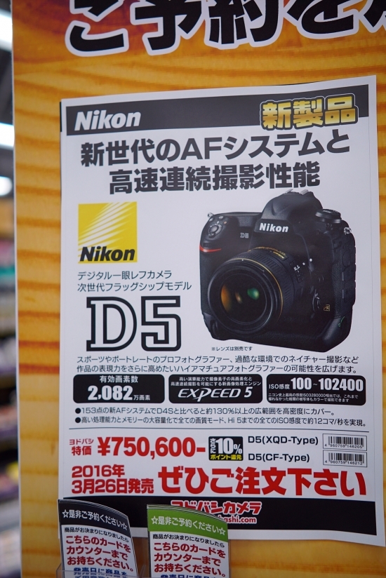 예상했었지만 엔화 생각하면 D5 830 D500은 285정도? D5는 백만원정도 싸네요 D500도 200초반일듯 싶네요